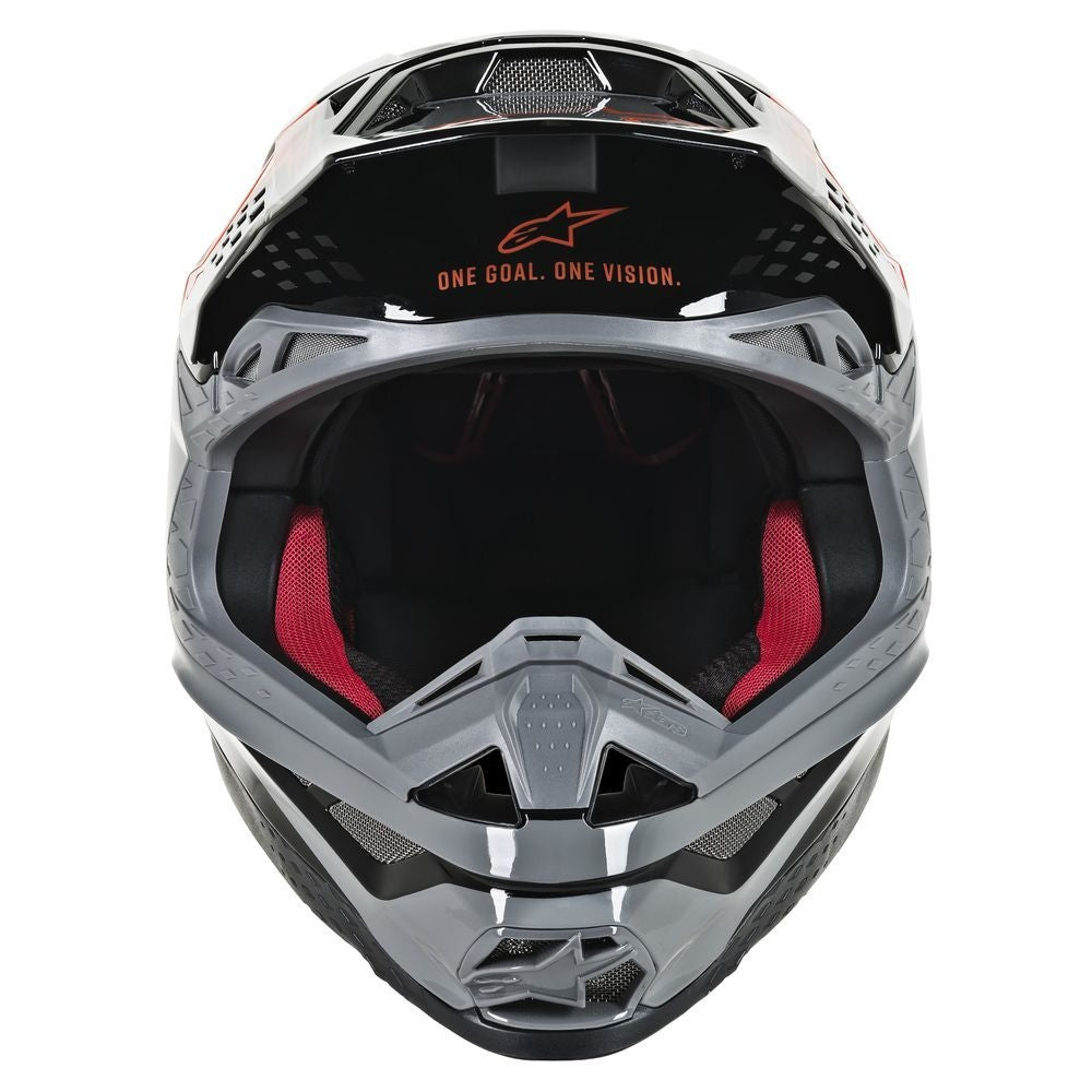 Alpinestars approach to the creation of the advanced technology in the Supertech M8 draws on its depth of experience from over half a decade of world class innovation across the spectrum of motorsports and especially, its deep rooted commitment to motocross. As with all other categories of technology that Alpinestars has mastered, bringing a new, highly complex, product to fruition requires specialist experience and know-how and a project plan led by the best brains in protection development. The S-M8 shell has been profiled with performance as a priority and with a design style that identifies the profile of the helmet and its sculpted surface as uniquely ‘Alpinestars’. Another key feature is the S-M8 shell sizing solution; each helmet fit size has its own appropriate shell size to deliver the most anatomical solution for the wide variety of fit needs worldwide.