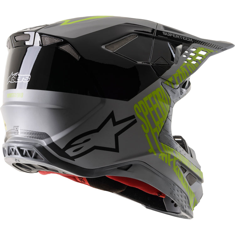 Alpinestars approach to the creation of the advanced technology in the Supertech M8 draws on its depth of experience from over half a decade of world class innovation across the spectrum of motorsports and especially, its deep rooted commitment to motocross. As with all other categories of technology that Alpinestars has mastered, bringing a new, highly complex, product to fruition requires specialist experience and know-how and a project plan led by the best brains in protection development. The S-M8 shell has been profiled with performance as a priority and with a design style that identifies the profile of the helmet and its sculpted surface as uniquely ‘Alpinestars’. Another key feature is the S-M8 shell sizing solution; each helmet fit size has its own appropriate shell size to deliver the most anatomical solution for the wide variety of fit needs worldwide.