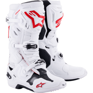 ALPINESTARS TECH 10 SUPERVENTED BOOTS WHITE/BRIGHT RED SZ 7