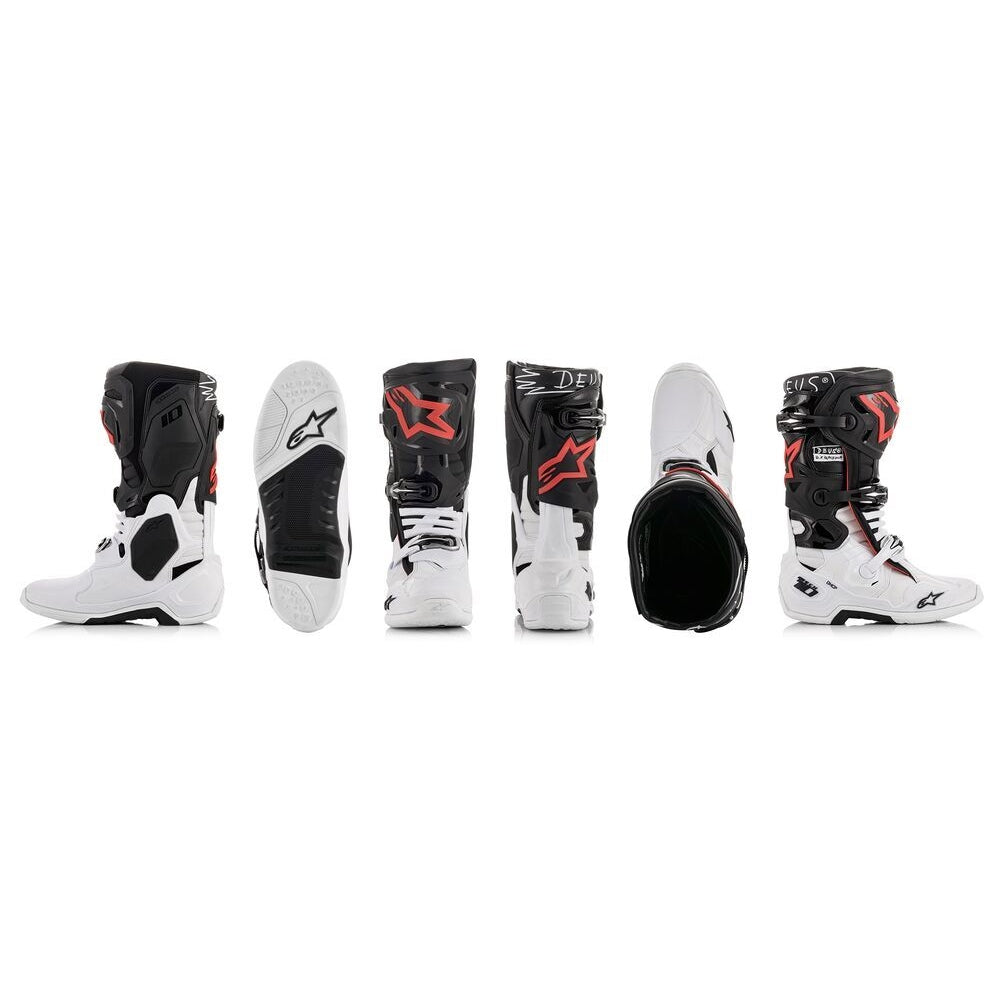ALPINESTARS TECH 10 X DEUS20 BOOTS BLACK/WHITE/RED SZ 10