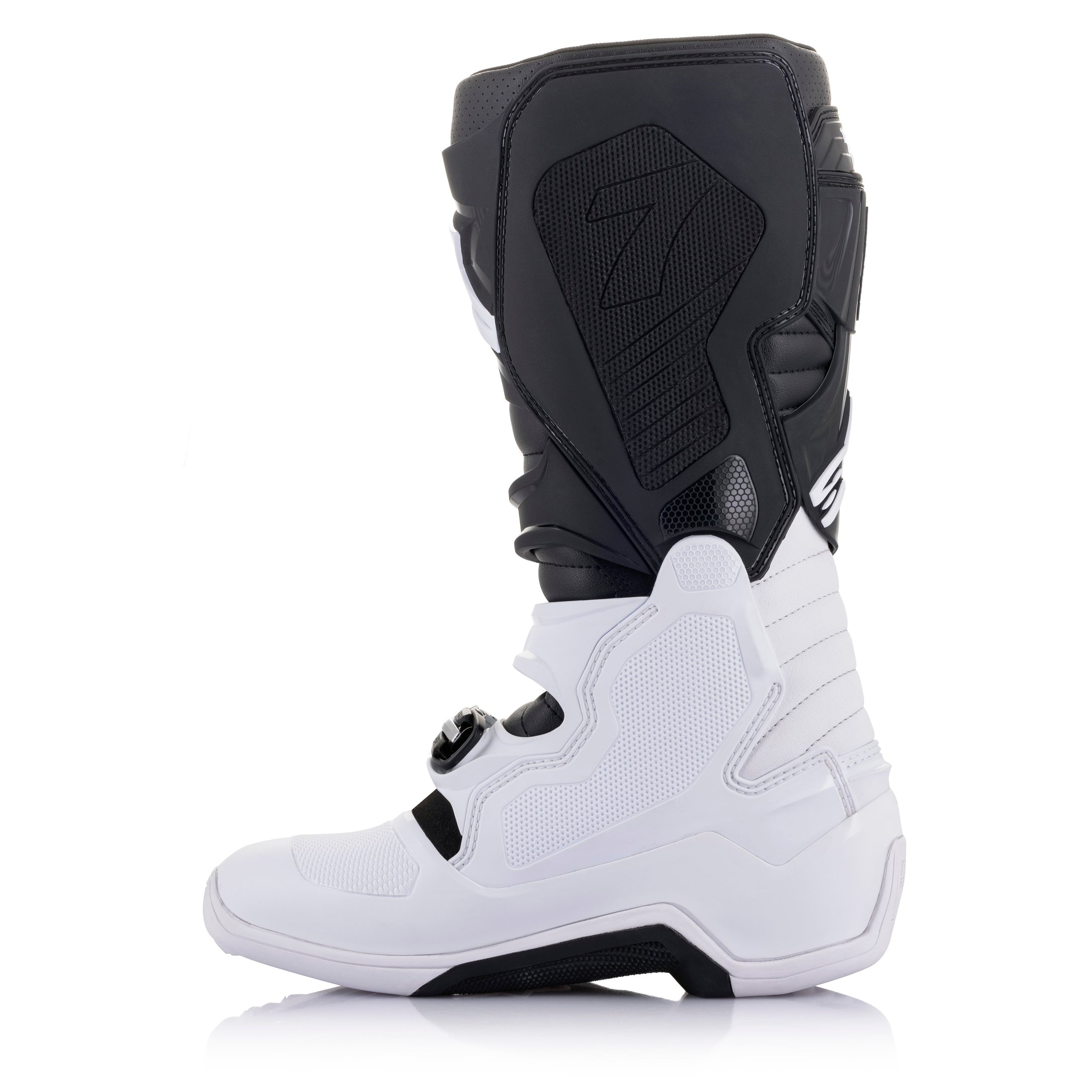 - Contoured calf protector plate is injected with high modulus polymer for impact resistance and incorporates Alpinestars’ developed blade flex system for greater precision control and movement