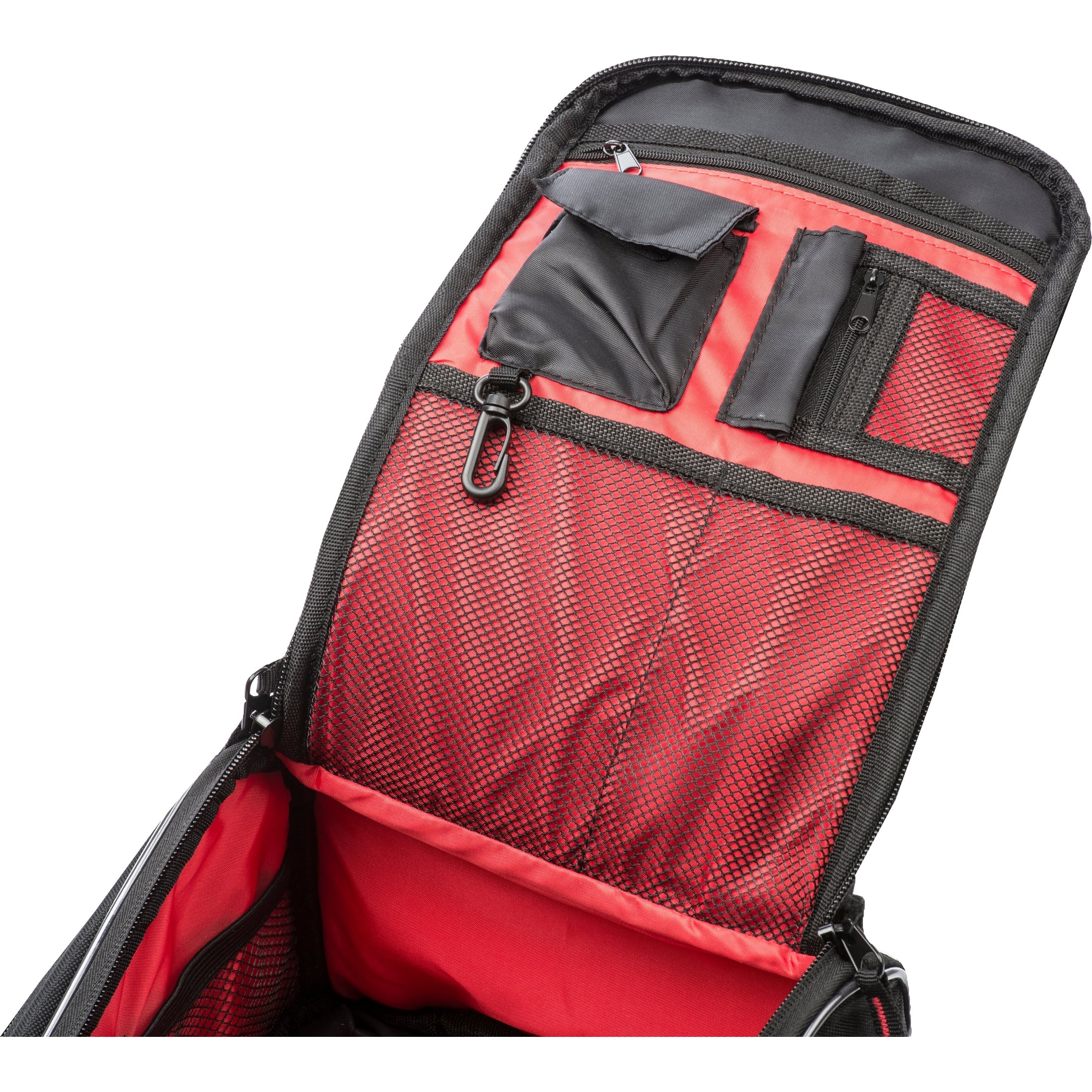 - Red lined interior makes finding items easy