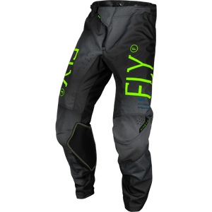 FLY RACING YOUTH KINETIC PRODIGY PANTS CHAR/NEON GREEN/TRUE BLU SZ 26