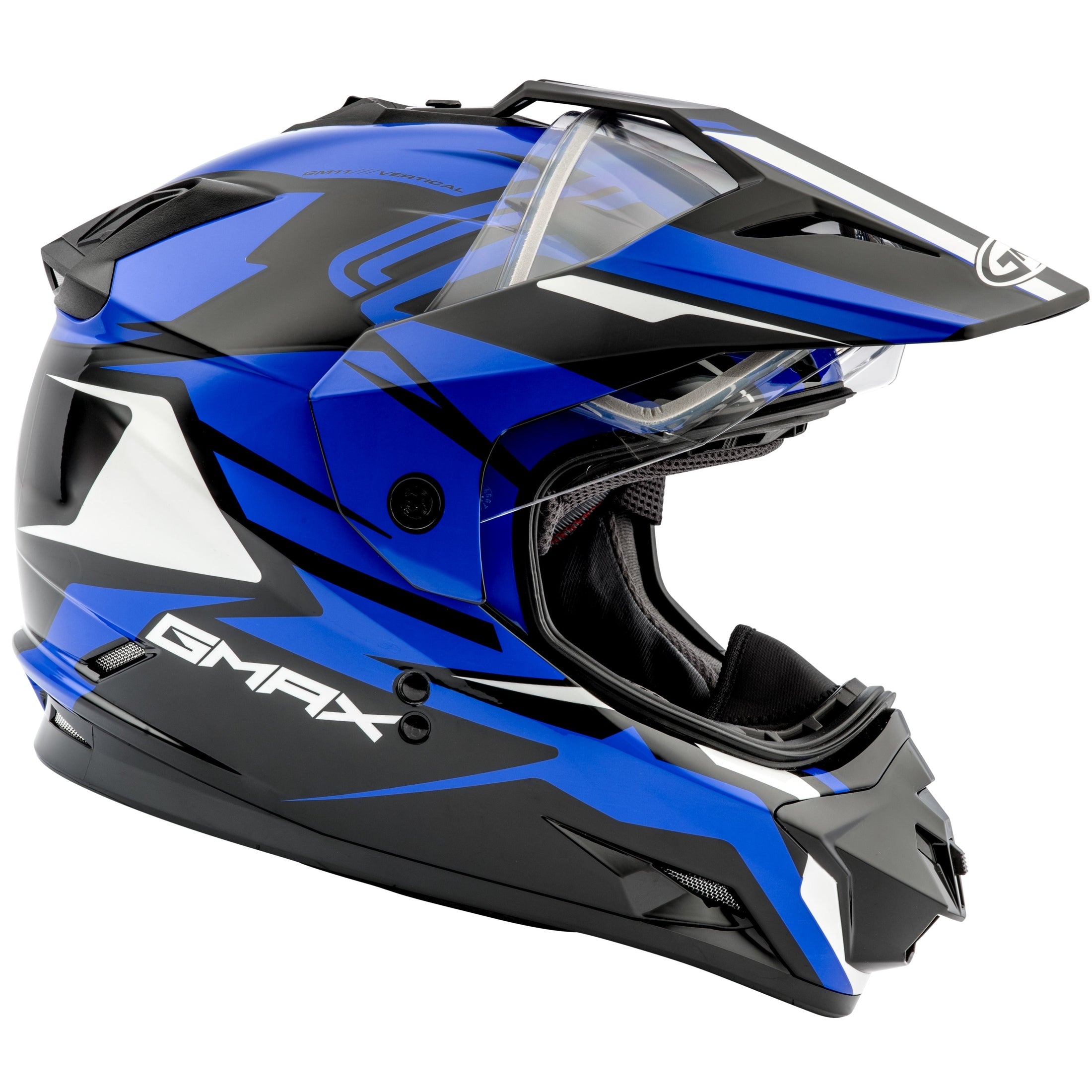 GMAX GM-11S DUAL-SPORT VERTICAL SNOW HELMET BLACK/BLUE SM