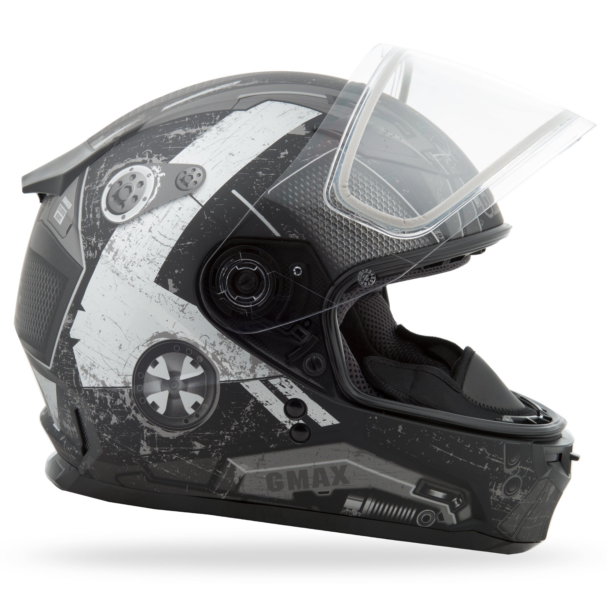 - Breath guard and snap-in chin curtain included
