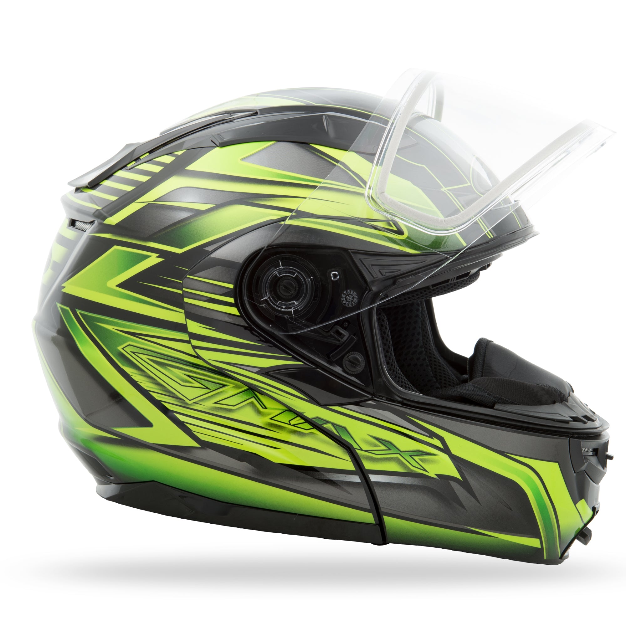 - “Dual Pivot” modular jaw design allows the flip jaw to rotate further back and sit low on the crown of the helmet. This increases the line of sight when in the raised position and it lessens fatigue by maintaining an even distribution of weight
