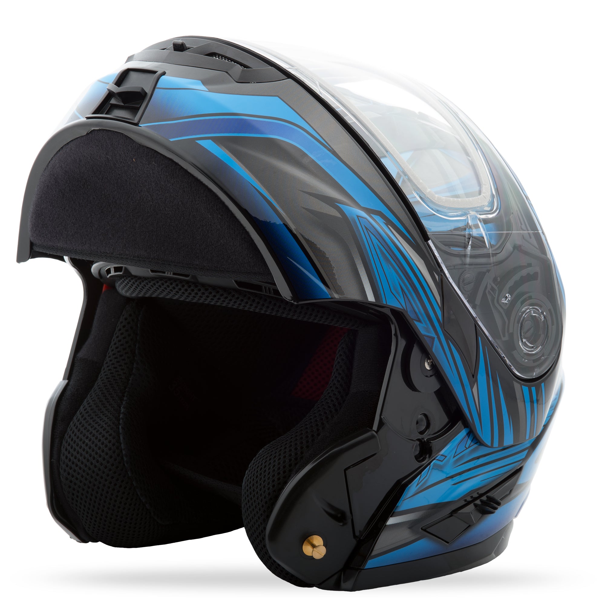 - “Dual Pivot” modular jaw design allows the flip jaw to rotate further back and sit low on the crown of the helmet. This increases the line of sight when in the raised position and it lessens fatigue by maintaining an even distribution of weight