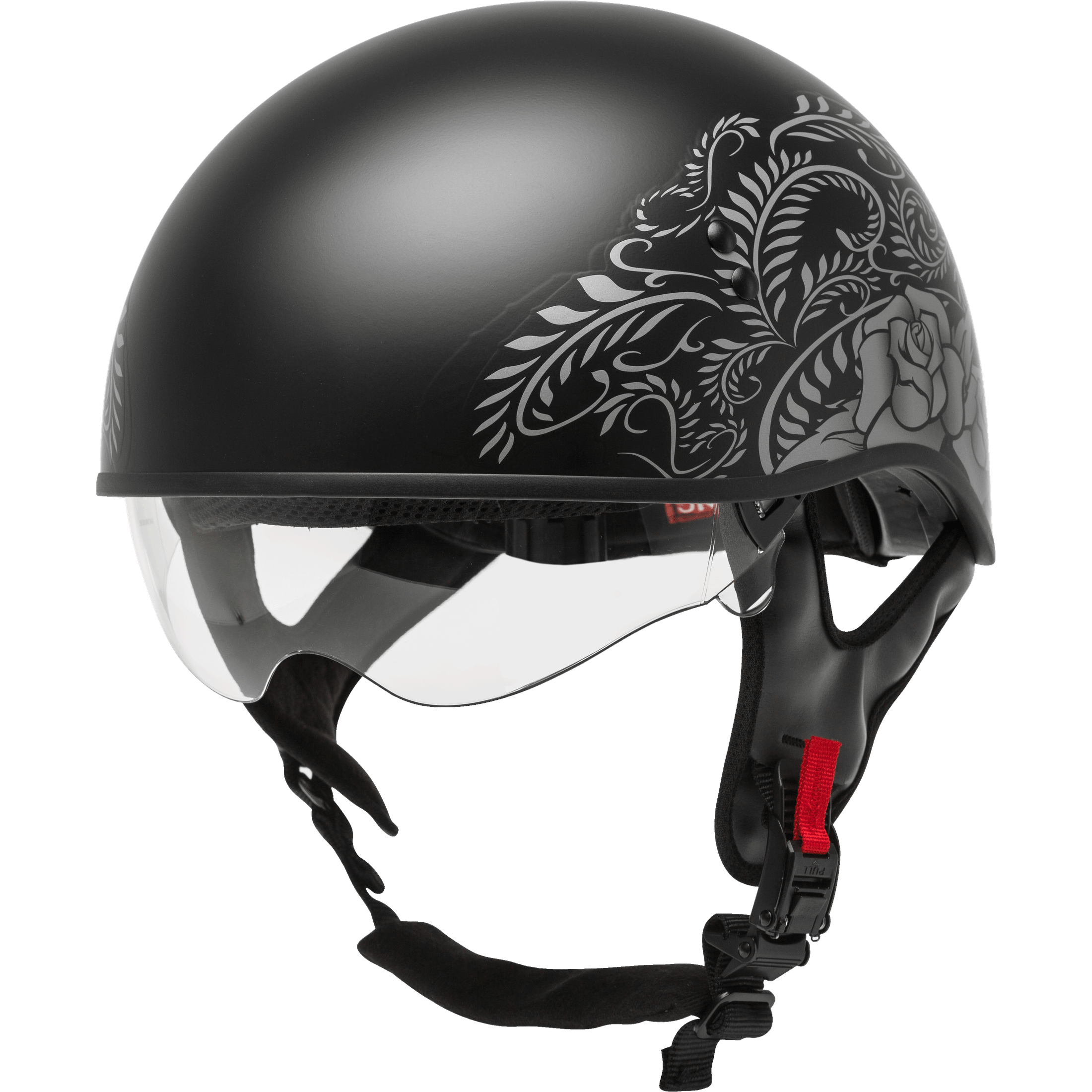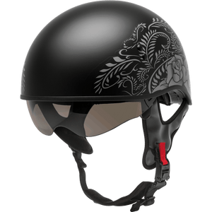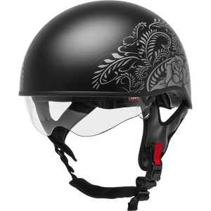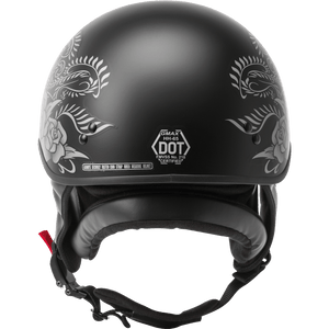 GMAX HH-65 HALF HELMET ROSE NAKED MATTE BLACK/SILVER MD