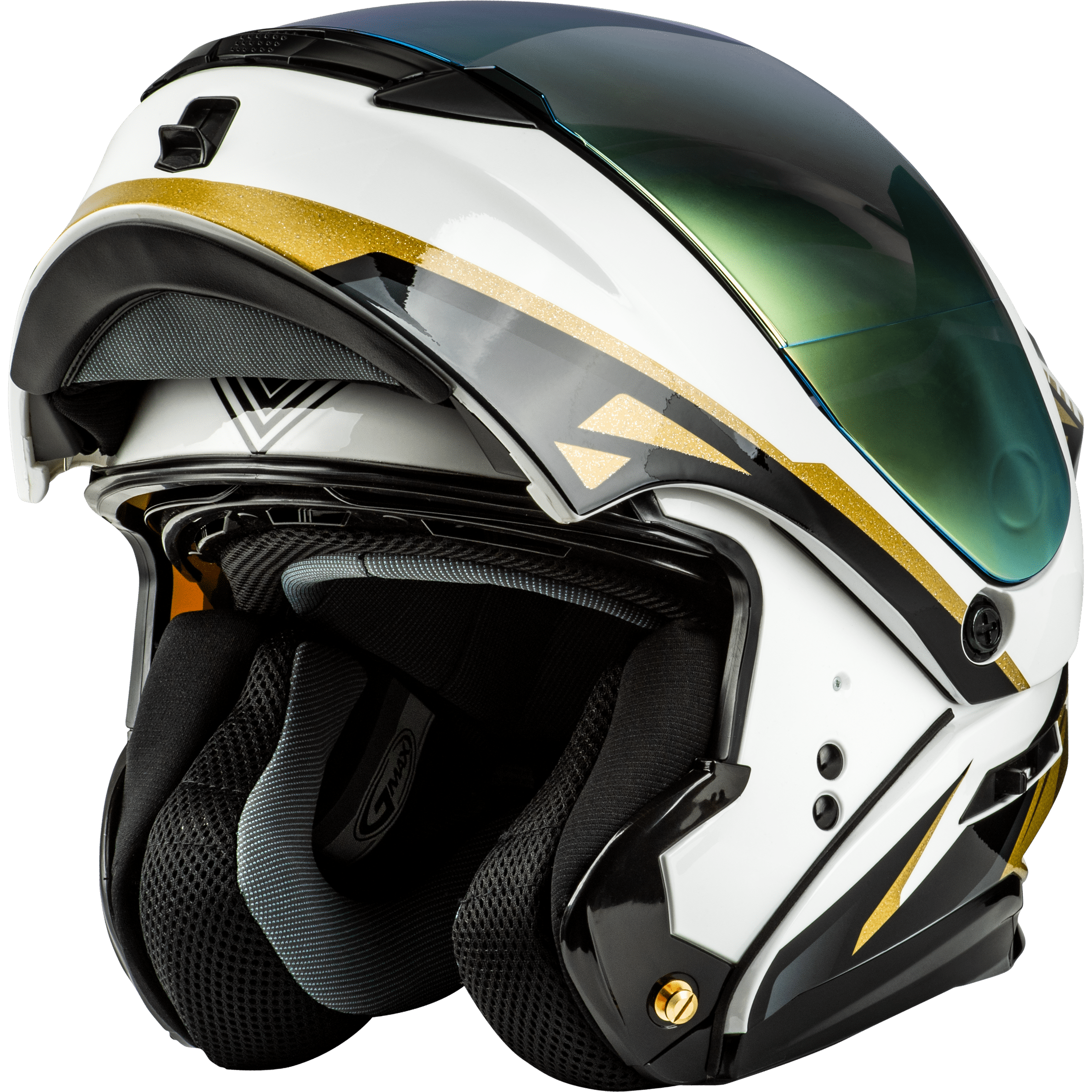 GMAX MD-01 VOLTA HELMET WHITE/GOLD/BLACK METALLIC XS