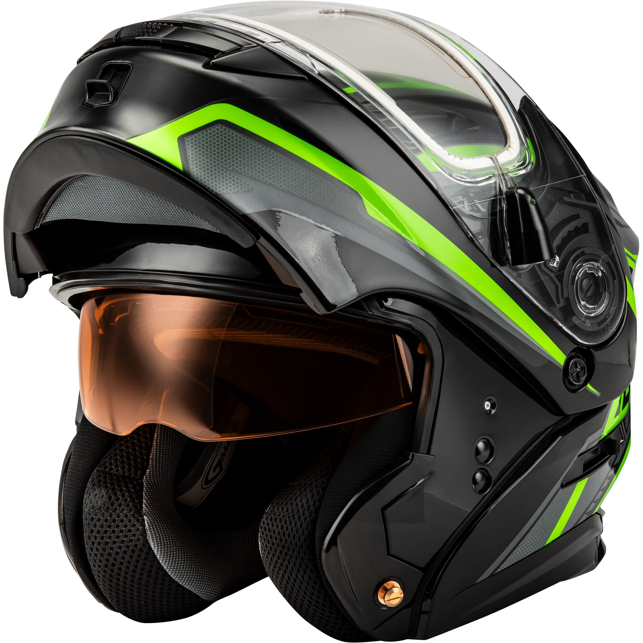 GMAX MD-01S TRANSISTOR SNOW HELMET W ELEC SHLD BLK/GREY/GREEN LG