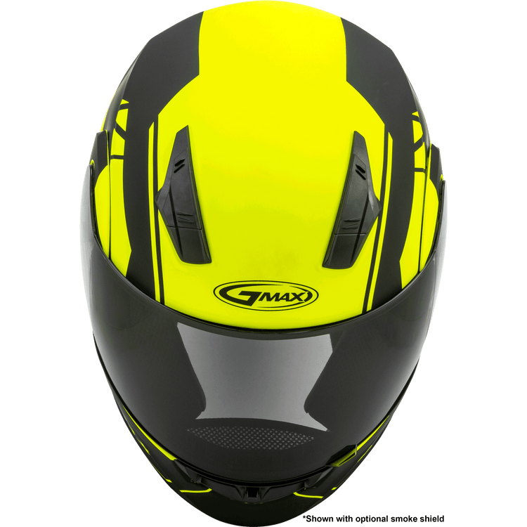 - GMAX® D.E.V.S (dual exhaust venting system) top and rear vents reduce temperature by allowing hot air to escape from the top of the helmet