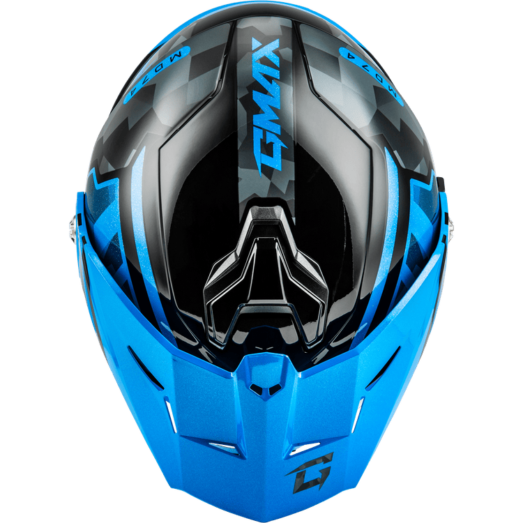 GMAX MD-74 STRIKER MODULAR HELMET W/BLU SHLD BLK/GRY/BLU MTLC XS