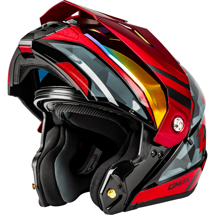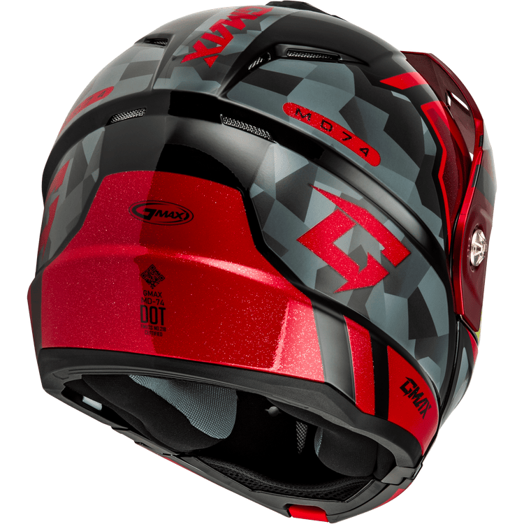 GMAX MD-74 STRIKER MODULAR HELMET W RED SHIELD BLK/GRY/RD MTLC XS