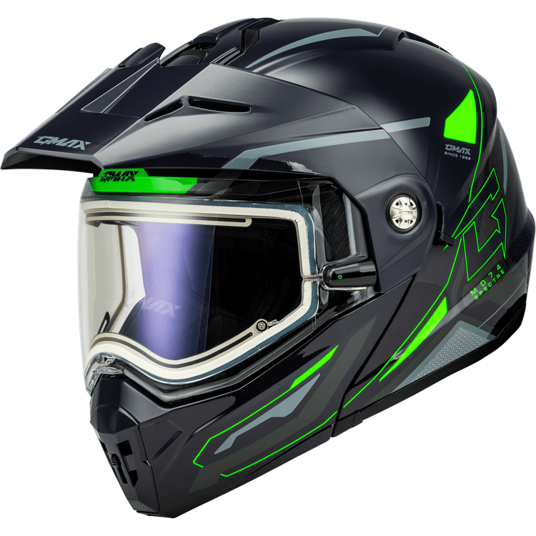 GMAX MD-74S SPECTRE SNOW HELMET W/ ELEC SHIELD GREY/NEON GREEN 2X