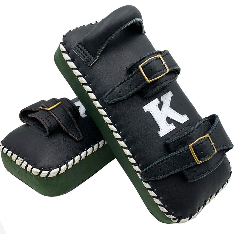 Kick Pads K Brand K-KKP Black Green Double Strap Muay Thai Boxing