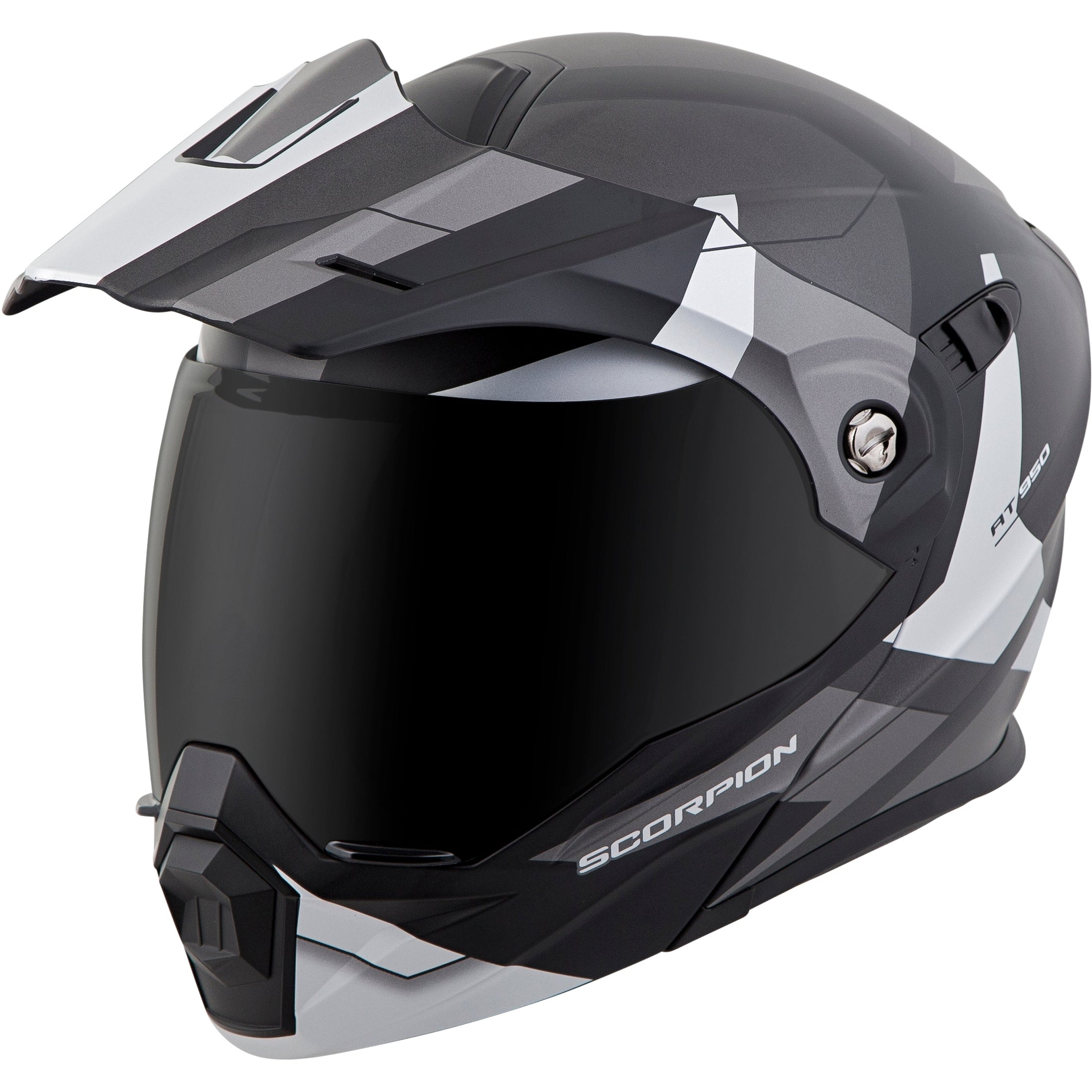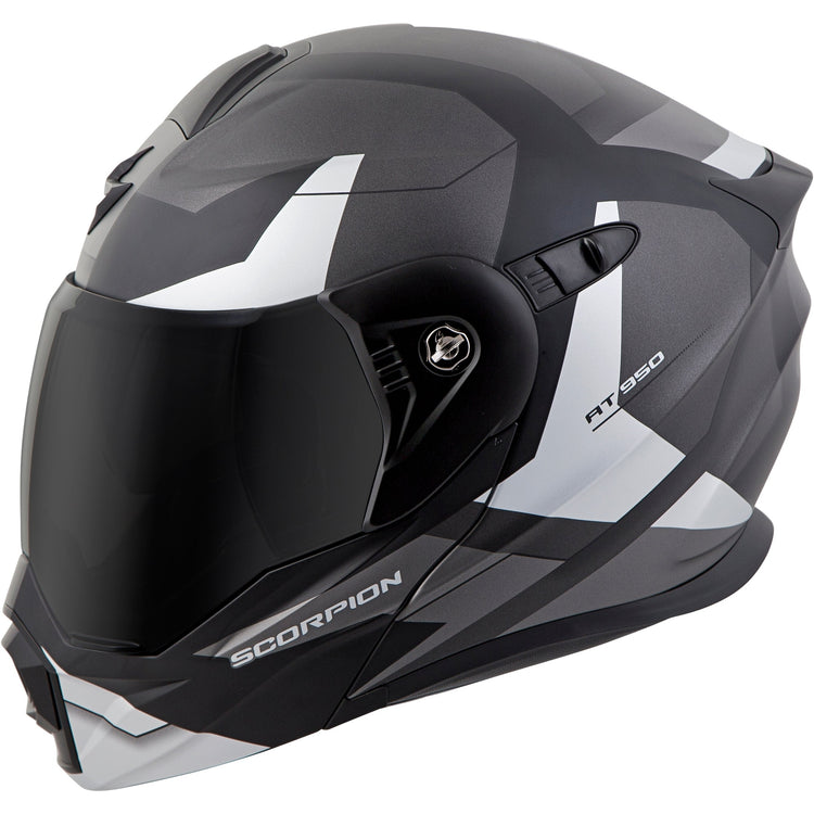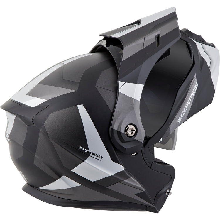 Introducing the EXO-AT950, a versatile modular adventure touring helmet. It has features and quality that you would expect to pay far more. The EXO-AT950 can be used as a full face adventure helmet with external peak visor attached, or the peak visor can be removed and you have an aerodynamic touring helmet. The no-fog Everclear® face shield can be removed and you can use the EXO-AT950 as a dirt helmet with goggles for off-road use. Our oversized eye port is extremely wide for greater peripheral vision and downward visibility, and the modular chin bar can be conveniently flipped up when you stop to get gas or ask for directions. The internal drop down sun visor and Kwikwick® II liner will keep you comfortable all day long even as lighting conditions change throughout the day. Three shell sizes made of advanced LG® polycarbonate and dual density eps, result in a helmet that is light weight, strong, and protective.