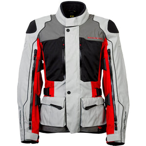 Men’s textile all weather touring jacket with zipped vents and removable waterproof and thermal liners.